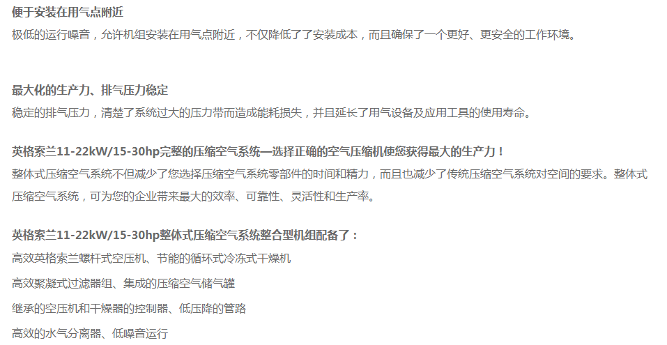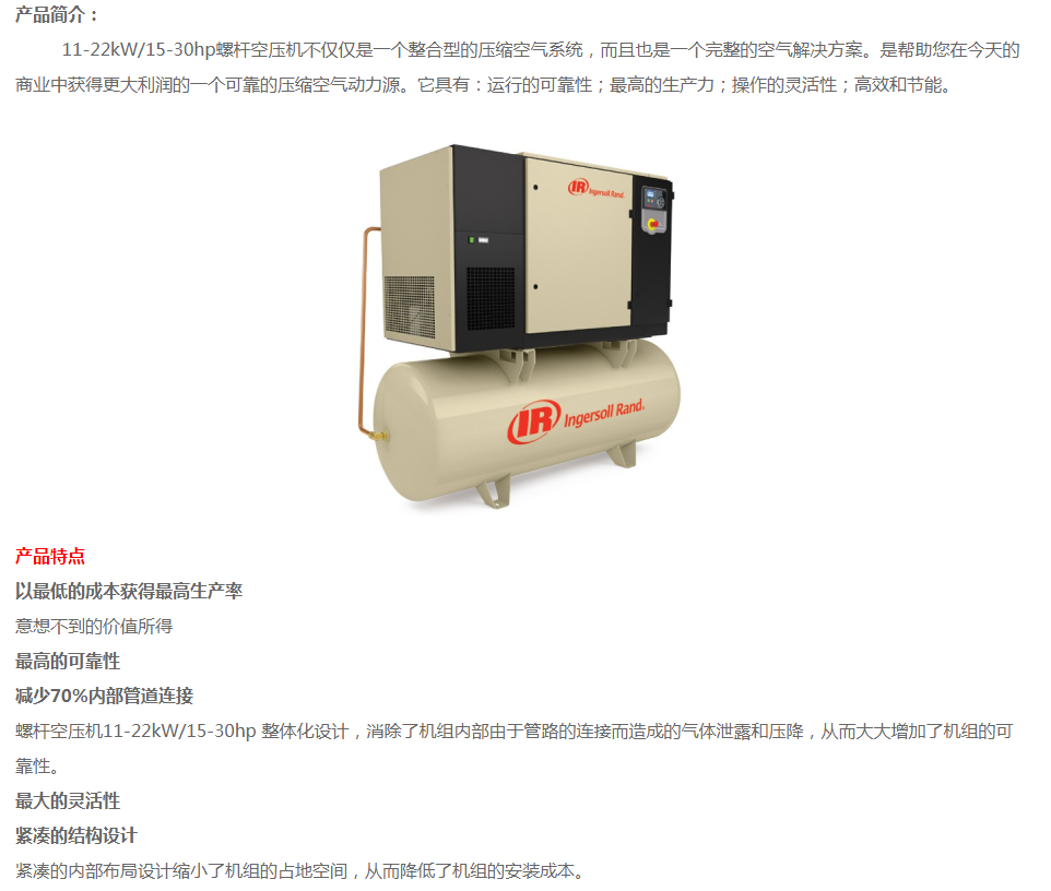 •        濟南銳博特機械設備有限公司是英格索蘭空氣壓縮機的授權代理商,代理銷售美國英格索蘭全系列的空壓機及后續處理設備。公司自成立以來,經過公司全體同仁不斷努力,開拓創新,以優良的技術、完善的售后服務,使得公司贏得了一個又一個的誠心客戶。我公司擁有多名專業的銷售及售后服務人員,為客戶提供空壓系統的售前、售中及售后的全方位優質服務。另公司有多名具有英格索蘭壓縮機授權服務證書的服務工程師,能維修和保養國內外各種品牌空壓機,公司各種國內外品牌空壓機配件庫存齊全。