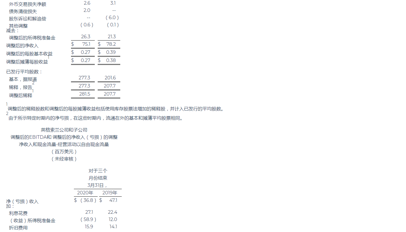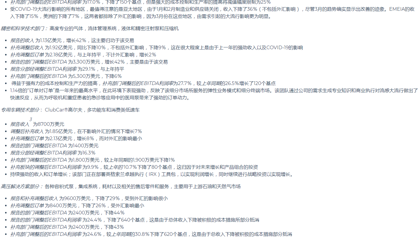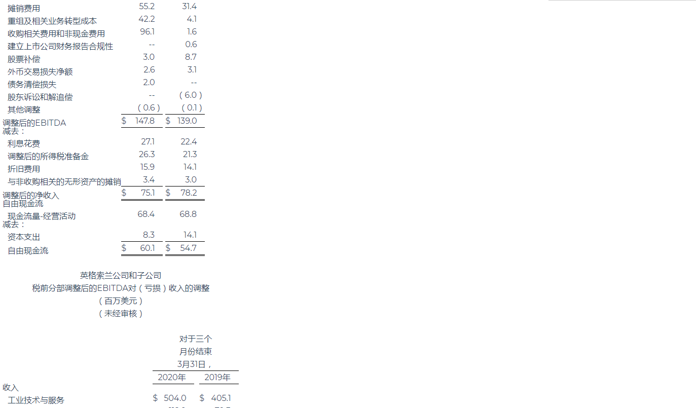 英格索蘭公布2020年第一季度業績